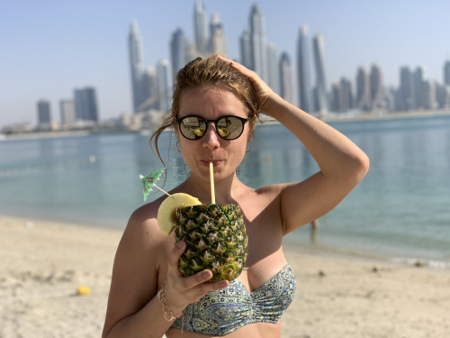 United Arab Emirates Dubai Beautiful woman Sea Beach Pineapple Cocktail Sexy Woman