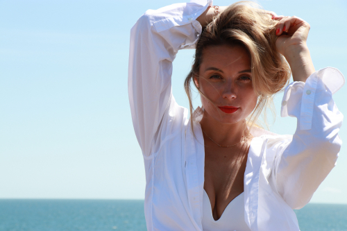 Sexy Woman Beautiful woman Sea White shirt Woman In Shirt Ira Kryshkevych Photo model