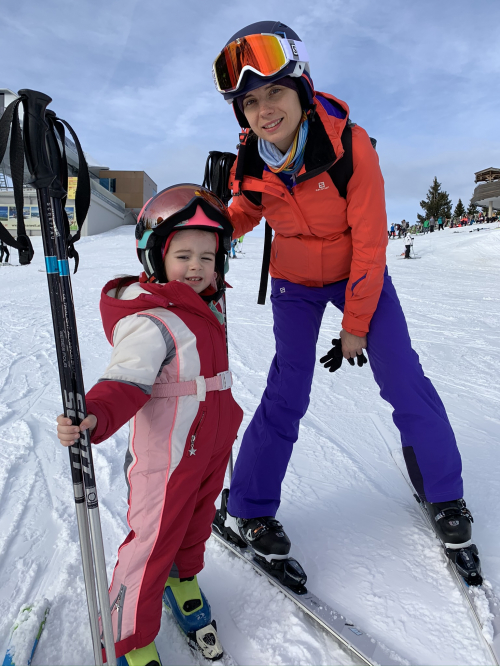 Austria Gemeinde Söll Winter Skier Mother and daughter