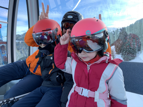 Austria Gemeinde Söll Winter Skier Mother and daughter