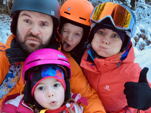 Austria Gemeinde Söll Happy family Family Winter Ski
