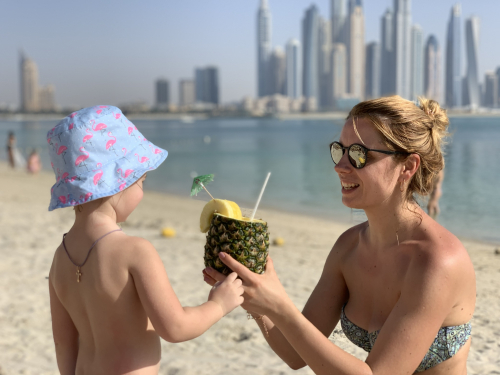 United Arab Emirates Dubai Beautiful woman Sea Beach Pineapple Cocktail Sexy Woman